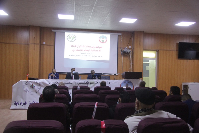 نظم مخبر التنمية الادارية للارتقاء بالمؤسسات الاقتصادية بولاية غرداية يوم الثلاثاء 23 فيفري 2021 بقاعة التعليم المتلفز ندوة التوجيهية حول ضوابط ومحددات اختيار الأداة الإحصائية للبحث الإقتصادي من تنشيط الأستاذ الدكتور بن قانة اسماعيل من جامعة ورقلة.
